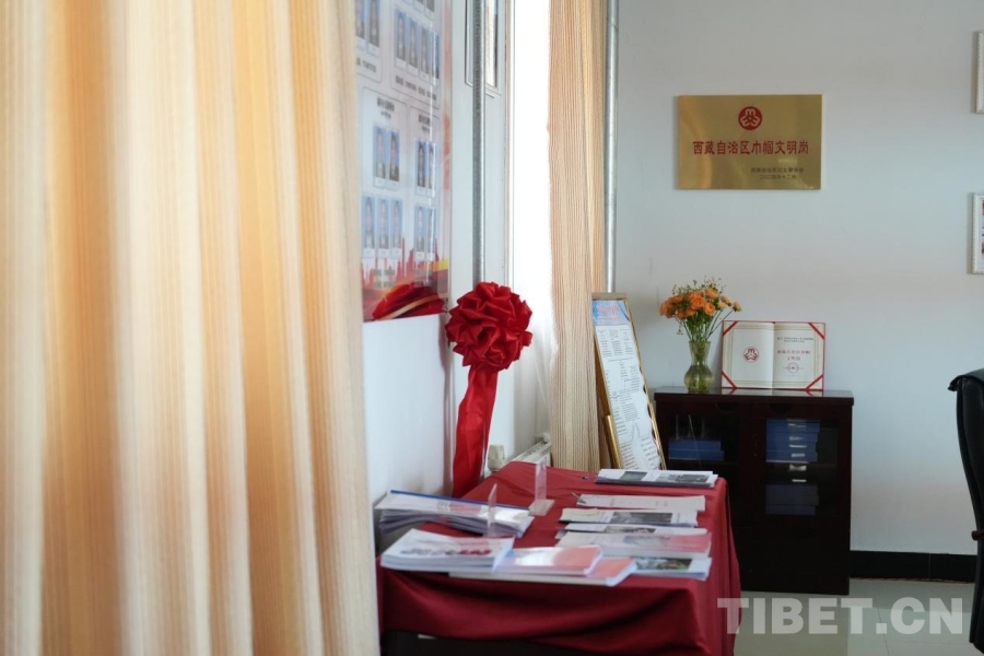 圖為阿里地區(qū)中級人民法院的溫馨調(diào)解室及“象雄梅朵”女法官維權(quán)工作站牌匾 攝影:邊子捷