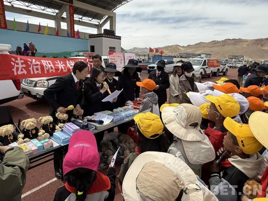 圖為今年5月底,維權(quán)工作站走進(jìn)阿里地區(qū)陜西實驗學(xué)校開展普法宣傳活動現(xiàn)場 來源:阿里法院微信公眾號
