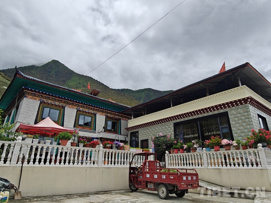 圖為村黨支部宣傳委員、村委會副主任尼瑪多吉在打理自家院子