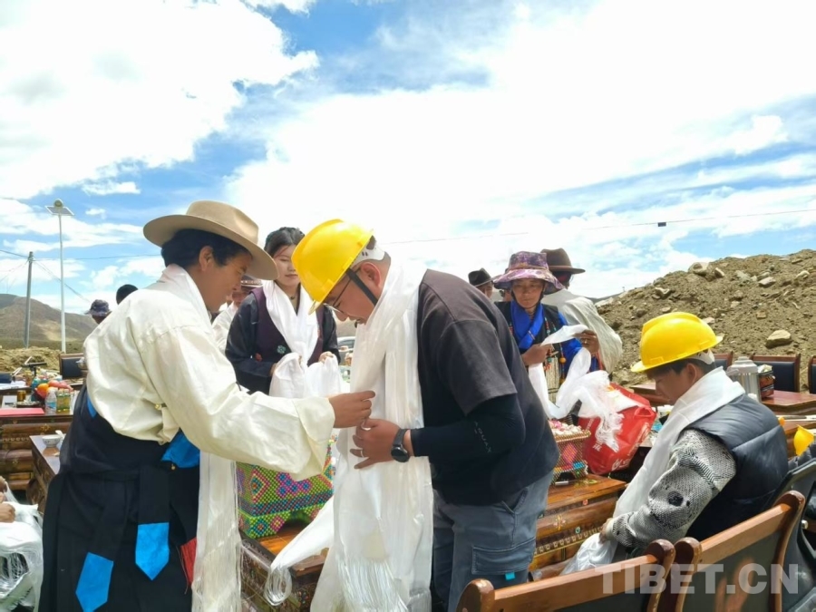 統(tǒng)規(guī)統(tǒng)建的郭加鄉(xiāng)乃村迎來了全村封頂?shù)南矐c時刻。儀式現(xiàn)場,鄉(xiāng)干部、村“兩委”班子、戶主代表與施工隊、監(jiān)理人員齊聚一堂。在西藏傳統(tǒng)的敬酒儀式中,大家紛紛為建設者斟滿酥油茶和青稞酒,用最淳樸的方式,向他們獻哈達表達敬意。
