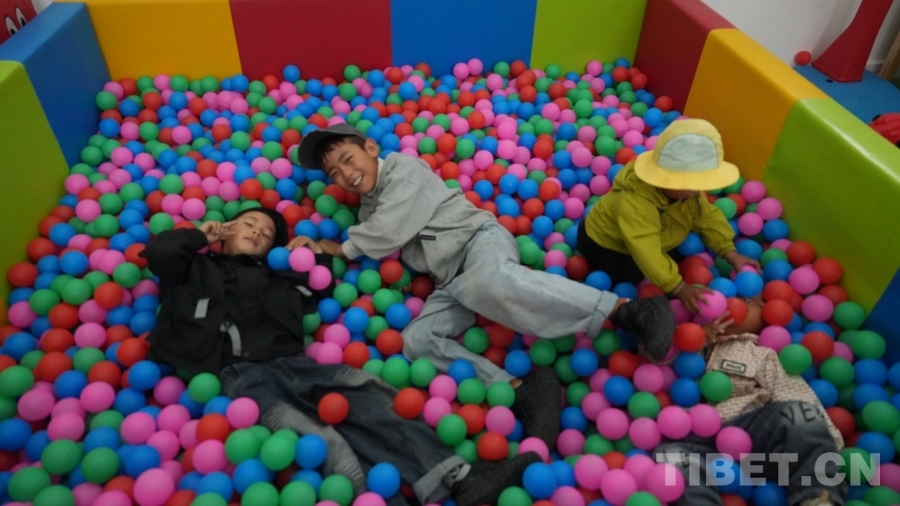 圖為小孩兒們?cè)谛腋sA站托幼室玩耍