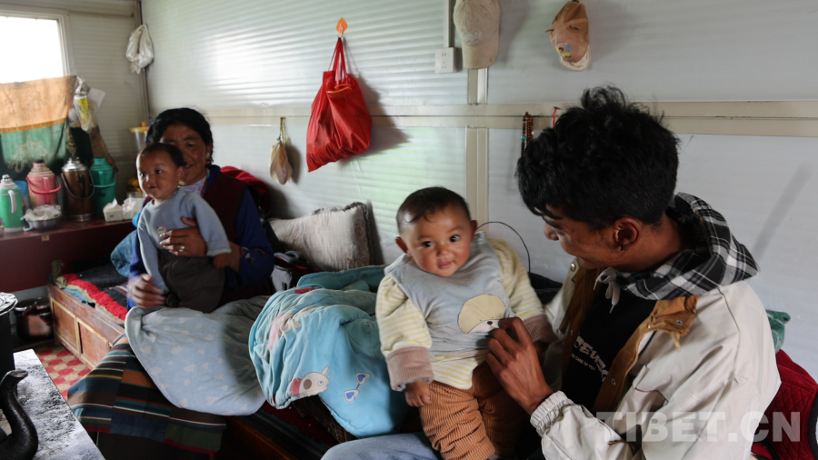午休時分,喧囂暫歇。旦增點旦匆匆趕回臨時板房。孩子們正由祖父母照料著。門一開,兩張稚嫩的小臉立刻點亮了夫妻倆的笑容。旦增點旦熟練地抱起小兒子,指尖輕柔地更換尿不濕;次仁卓嘎則麻利地舀奶粉、沖溫水、搖勻奶瓶,遞給兒子,輕聲叮囑:“慢點喝。” 狹小的板房里,兩人一邊照顧孩子,一邊低聲交流著工地的瑣事和對未來的憧憬。待孩子安穩(wěn),他們才端起早已備好的午飯,囫圇幾口,又匆匆奔向工地。