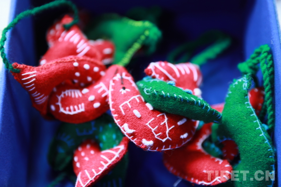 達(dá)娃片多介紹,店里大部分商品都是一針一線的純手工作品,制作者是來(lái)自西藏各地的群眾。公司會(huì)派出老師到西藏各地為群眾進(jìn)行手工藝品制作培訓(xùn),并提供原材料和手工藝品訂單,從而形成手工藝品產(chǎn)銷(xiāo)合作關(guān)系,幫助群眾增加收入。經(jīng)過(guò)近20年的堅(jiān)持和探索,現(xiàn)在已經(jīng)有500多位西藏各地女性參與制作。
