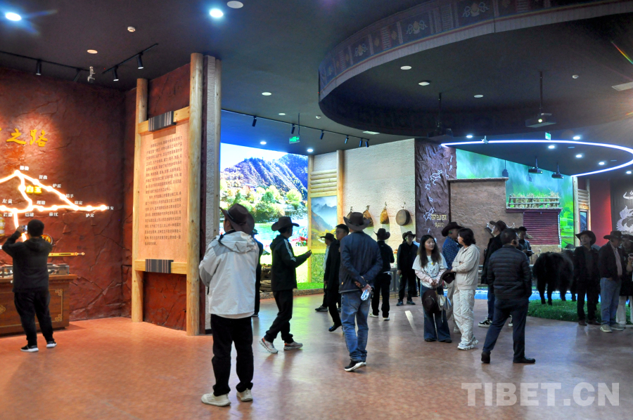 新建成的昌臺牦??破詹┪镳^,通過國家級非遺傳承人創(chuàng)作的巨型浮雕《雪域之魂》、藏漢雙語藝術(shù)墻、裸眼3D影片《高原靈韻·牦牛之歌》、逼真的野牦牛生活環(huán)境還原與標(biāo)本、農(nóng)區(qū)“崩科藏房”及游牧黑帳篷場景復(fù)原、牛皮船制作技藝展示,以及詳實的圖文、視頻資料和互動裝置,全方位、沉浸式地講述了牦牛的起源進(jìn)化、生物學(xué)特性、與藏族先民共生共榮的馴化史,以及其在高原農(nóng)耕、游牧、運(yùn)輸乃至古代南方絲綢之路貿(mào)易中的核心作用。