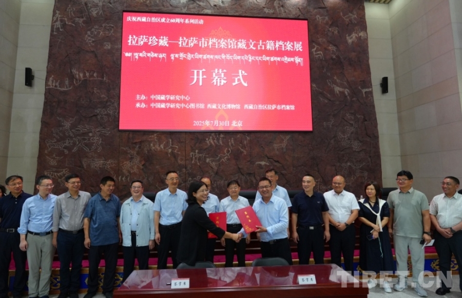 本次展覽由中國藏學研究中心主辦,中國藏學研究中心圖書館、西藏文化博物館和西藏自治區(qū)拉薩市檔案館共同承辦。開幕式上,中國藏學研究中心圖書館與拉薩市檔案館簽署《藏文古籍檔案文獻數(shù)據(jù)共享與開發(fā)利用合作協(xié)議》。(中國西藏網 記者/周晶)