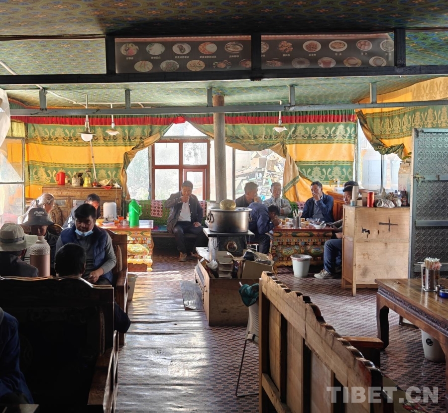 43歲的拉姆和家人共同經(jīng)營著一家藏式茶館,主要供應甜茶、肉餅、藏面、炸土豆、砂鍋餃子等深受當?shù)厝罕娤矏鄣拿朗场@愤€在茶館對面開設了一間便民小賣部,貨架上整齊擺放著各類生活必需品,成為村民們?nèi)粘2少I的溫馨驛站。