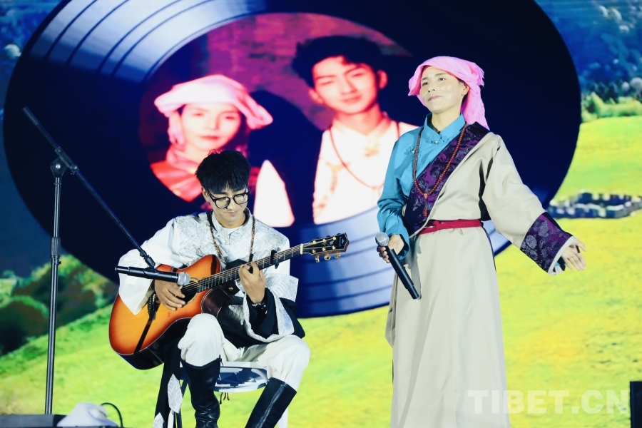 圖為歌手組合丹正母子在啟幕儀式上演唱了其代表作歌曲《別哭》《大風(fēng)吹過青瓦房》,贏得臺(tái)下歡呼陣陣。攝影:龍真多吉