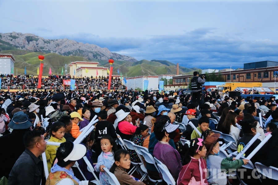 圖為啟幕儀式現(xiàn)場(chǎng)座無(wú)虛席,為囊謙縣群眾帶來一場(chǎng)跨越地域的文化盛宴與視聽體驗(yàn)。攝影:龍真多吉