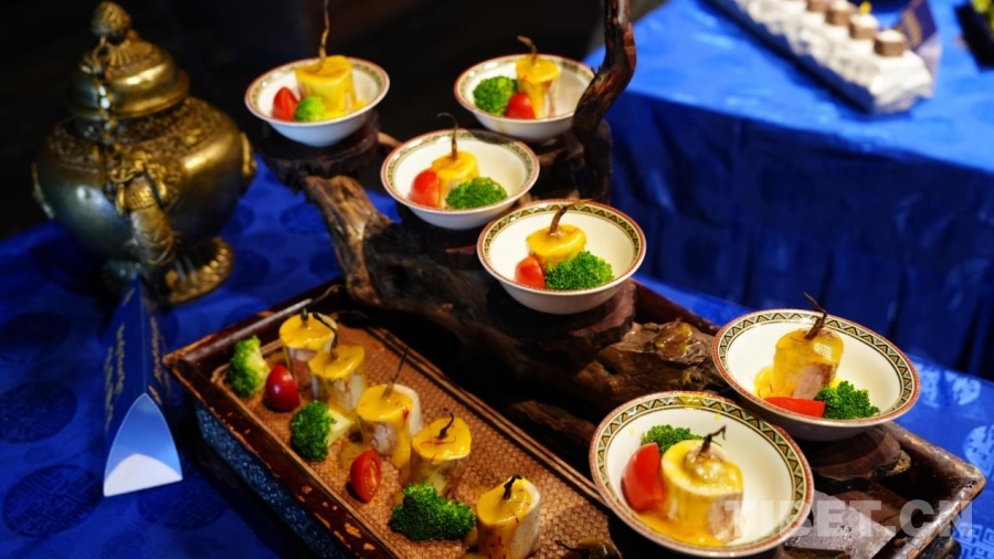 圖為廚房內(nèi)展示的藏餐菜品