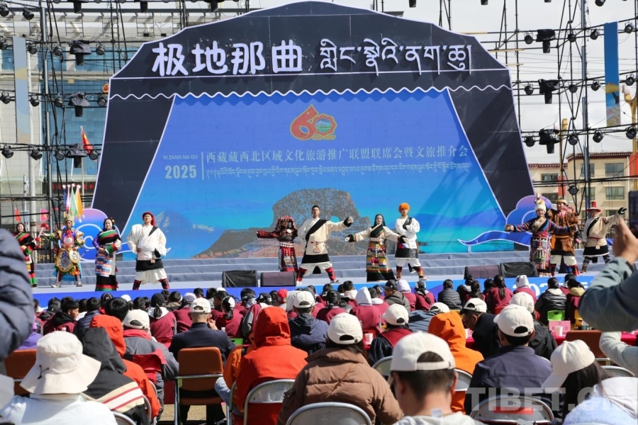 活動開始前,現場播放了昌都、那曲、阿里及相關縣(區(qū))的文化旅游宣傳片。昌都市與那曲市先后登臺推介本地文化旅游資源,昌都重點展示了茶馬古道、三江并流以及芒康鹽井等獨特資源;那曲則聚焦于羌塘草原、納木錯圣象天門、薩普景區(qū)以及格薩爾史詩等核心資源,彰顯了“極地那曲”的無限魅力。索縣、申扎、尼瑪三縣從微觀視角推介縣域特色——索縣的贊丹雪、穹雄溝、申扎縣的色林錯、尼瑪縣的當惹雍錯等人文風光,進一步豐富了藏西北文旅的內涵。舞蹈《古韻》,《非遺服飾秀》、歌曲《年輕的城市》《請到那曲走一走》一次次將聯席會推向高潮。