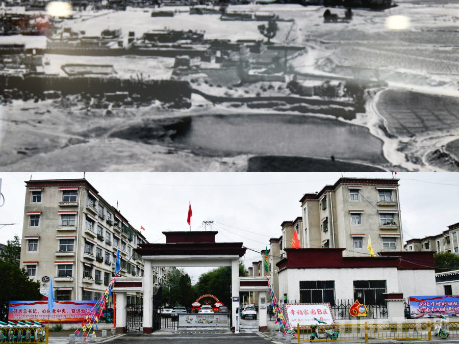 圖為西藏自治區(qū)日喀則市桑珠孜區(qū)城北街道幸福社區(qū)的新舊對比 攝影:趙振宇