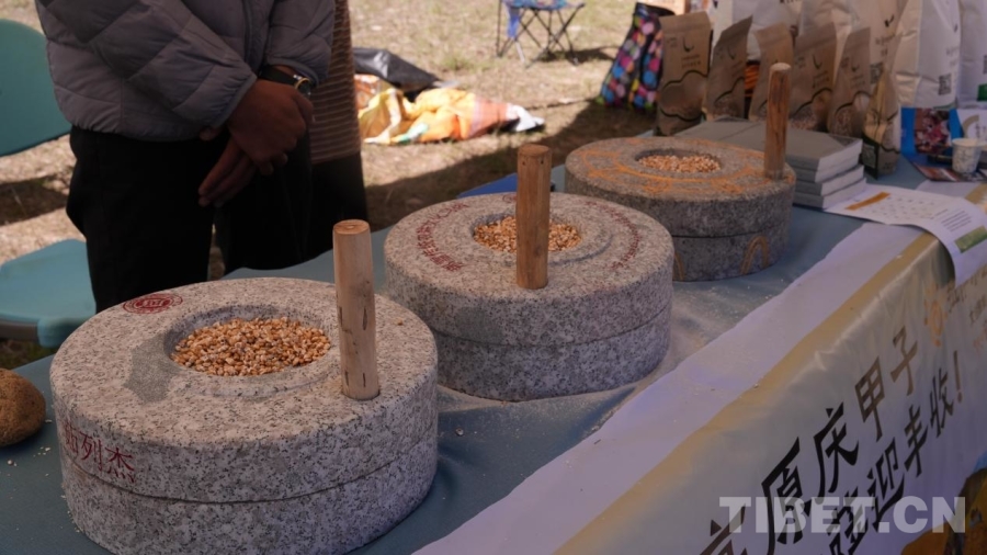 圖為茹列杰展銷(xiāo)點(diǎn)展示的磨糌粑用的石磨