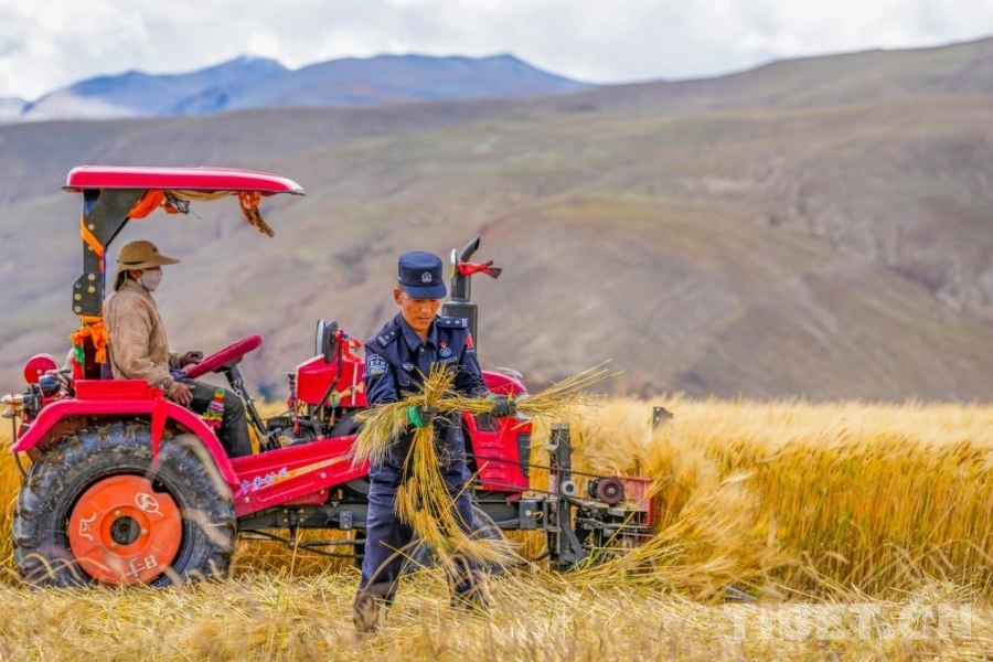 中國西藏網(wǎng)訊 金秋時節(jié),青稞飄香。9月底,西藏日喀則邊境管理支隊涅如麥邊境派出所民警們深入田間,在廣袤的田野上,與農(nóng)牧民一同俯身勞作,揮鐮收割,搶收青稞。金黃麥浪中,那一抹抹“警察藍”與辛勤的群眾構(gòu)成了一幅警民情深、秋收喜悅的動人畫卷。(中國西藏網(wǎng) 通訊員/葉軼 記者/趙振宇)