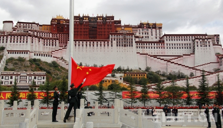 圖為布達(dá)拉宮廣場上,拉薩各族各界代表參加升旗儀式 攝影:趙釗