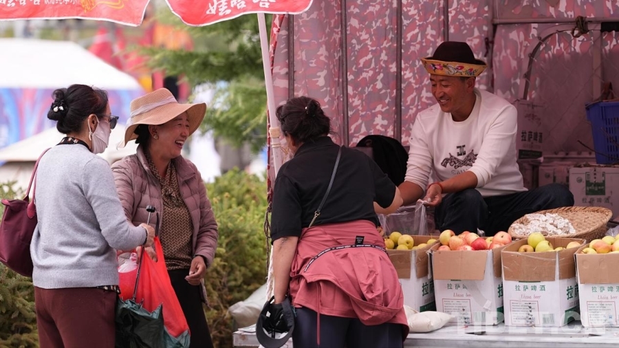 圖為10月2日,市民群眾在活動現(xiàn)場選購林芝蘋果