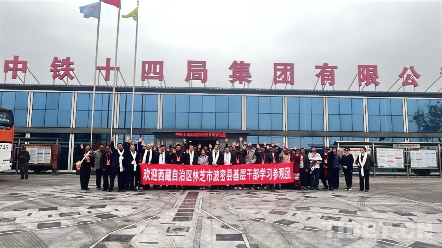 圖為西藏基層干部學(xué)習(xí)參觀團(tuán)與中鐵十四局相關(guān)人員合影 攝影:王茜