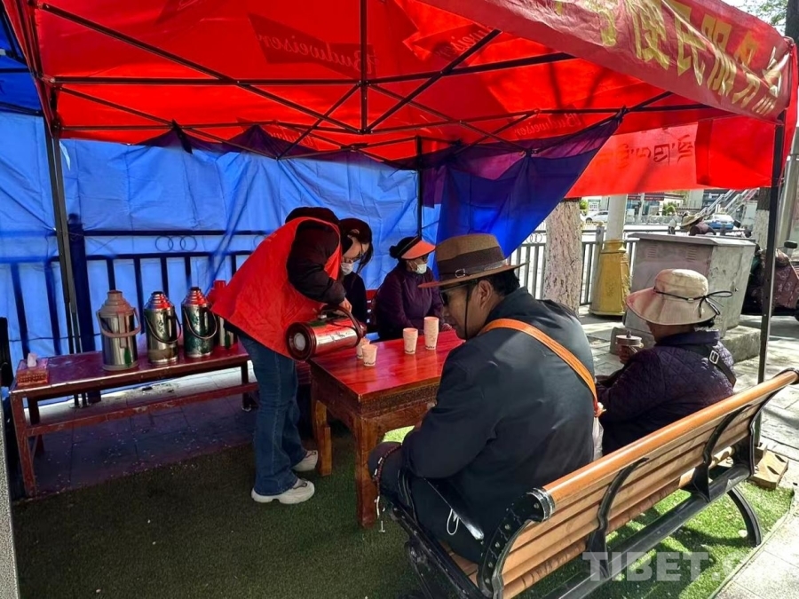 圖為在社區(qū)便民服務點工作人員在為社區(qū)老人提供酥油茶 受訪者供圖