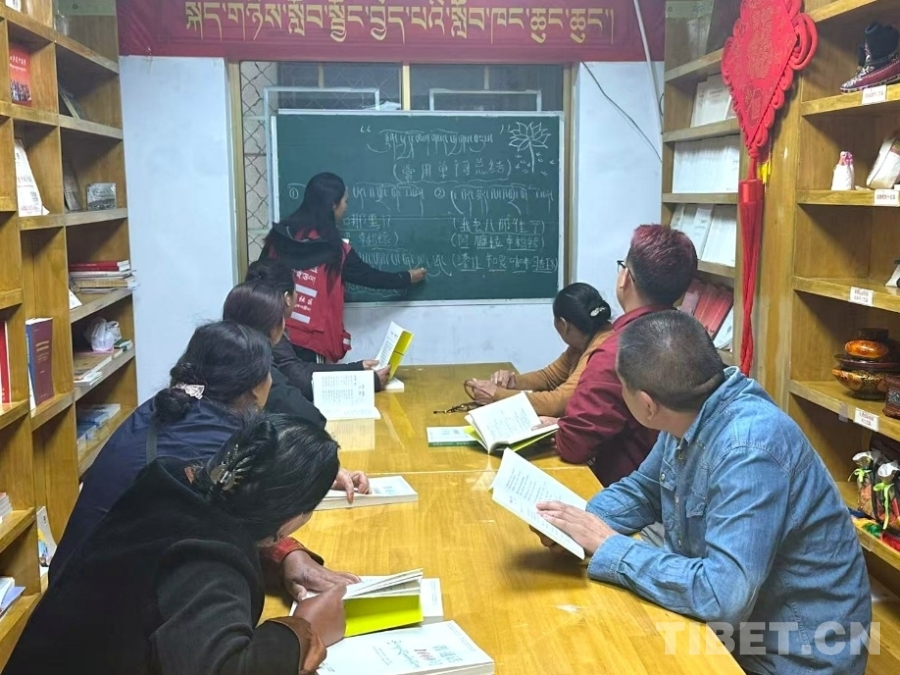 作為全區(qū)唯一一個全國“雙語”學習特色社區(qū),魯固社區(qū)把“學語言”變成了“聚人心”的紐帶。走進社區(qū)服務中心的雙語學習小課堂,長桌擦得發(fā)亮,小黑板上密密麻麻寫滿了藏漢雙語的日常用語,墻角的書架上整齊擺放著《普通話1000句》和《走遍拉薩300句》。
