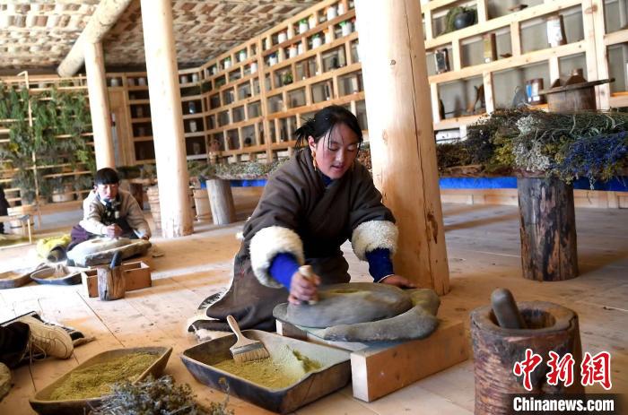 在藏香制作傳習(xí)所,藏族女孩麥莫正認(rèn)真看著老師用開(kāi)孔牦牛角擠制傳統(tǒng)藏香?!奥毟弋厴I(yè)后我原本可以當(dāng)老師,但是我還是回到家鄉(xiāng)學(xué)習(xí)藏香,因?yàn)槲蚁矚g家鄉(xiāng)的花。”麥莫介紹,藏香會(huì)用到高原杜鵑花、藏紅花、雪蓮花等幾十種鮮花、藥材,每到鮮花盛開(kāi)的季節(jié),都會(huì)有一兩百個(gè)女孩一同采集鮮花、藥材。最近大家還開(kāi)發(fā)了藏香的衍生品香包、掛件等,即將在壤塘縣集中展示銷售非遺產(chǎn)品的“非遺超市”售賣(mài)。