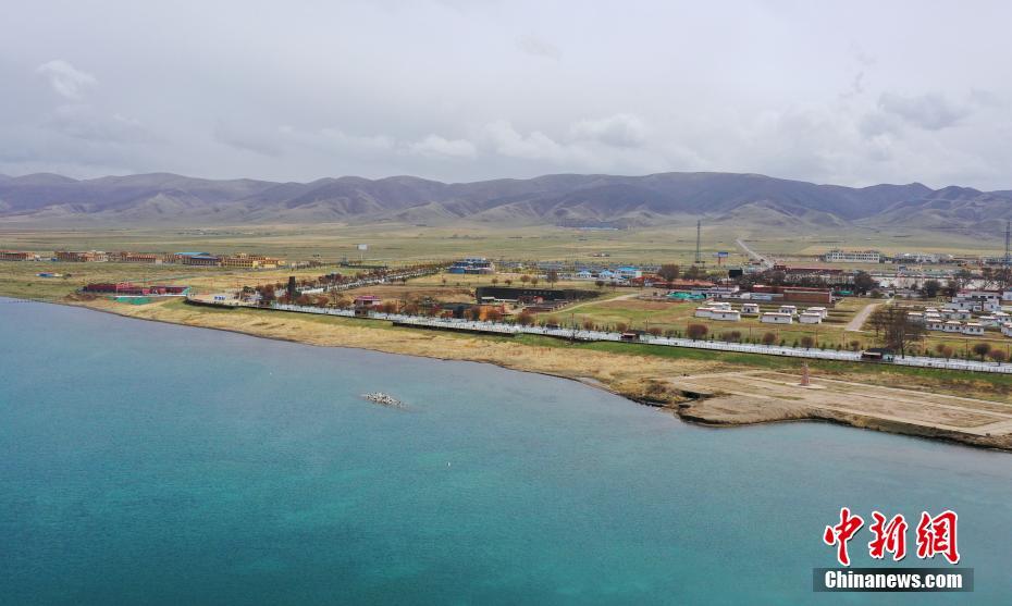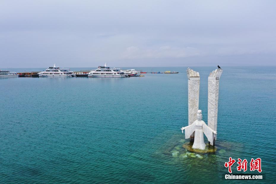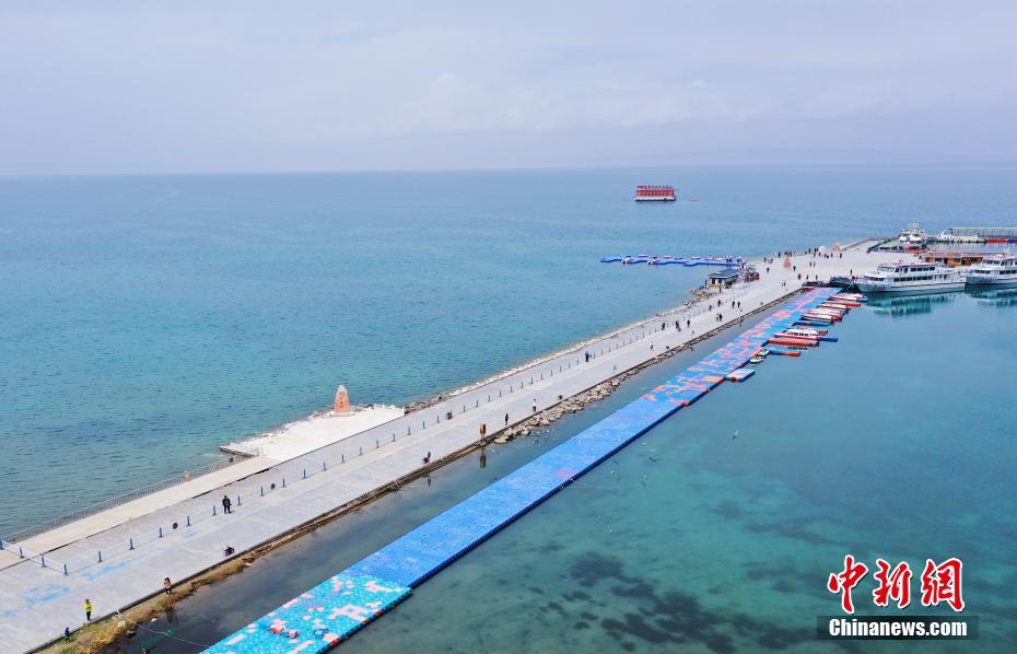5月19日,航拍被碧綠湖水包圍的青海湖二郎劍景區(qū)碼頭。初夏時節(jié),青海省海南藏族自治州青海湖畔萬物復蘇,碧水藍天,宛如油畫。中新社記者 馬銘言 攝