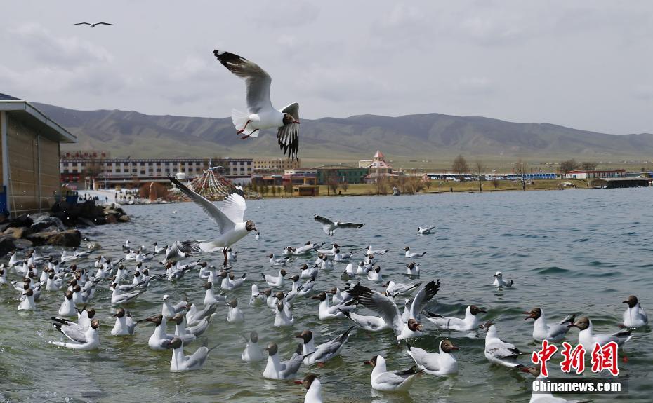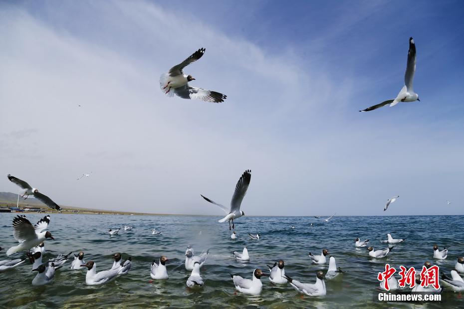 5月19日,水鳥在青海湖自由翱翔。初夏時節(jié),成群的魚鷗、斑頭雁等多種水鳥在青海省海南藏族自治州青海湖景區(qū)內自由翱翔,嬉戲玩耍,吸引游客前來觀賞。中新社記者 馬銘言 攝