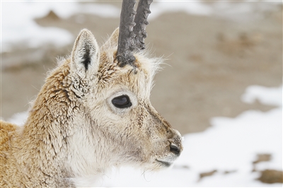 這是拍攝藏羚羊遷徙的第3天,我們第一次拍到了一只藏羚羊和它身后印在雪地上的一行足跡,我們第一次看到它們黑色眼睛里包裹著我們身影的脈脈溫情,我們第一次把手伸向前方感觸它們溫暖的鼻息。
