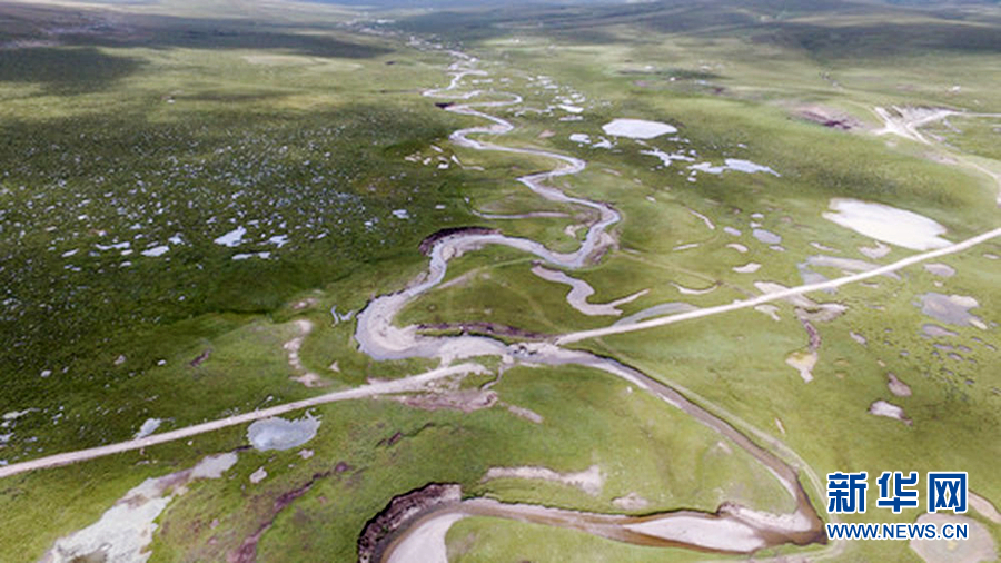 位于青海省玉樹(shù)藏族自治州雜多縣的長(zhǎng)江南源當(dāng)曲河道(2019年8月6日無(wú)人機(jī)拍攝)。新華社 吳剛 攝