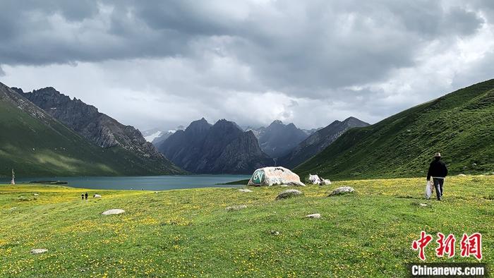 盛夏的年保玉則遍地開著金黃色的格?;?,遠處的湖水、雪山與藍天白云相互交映,宛如一幅油彩畫。肉公和他的隊友們手拿編織袋和長長的夾鉗按點進行巡護。
