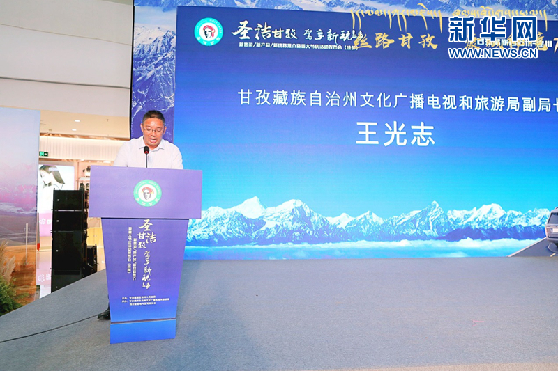 甘孜州文化廣播電視和旅游局副局長王光志在發(fā)布會上致辭。