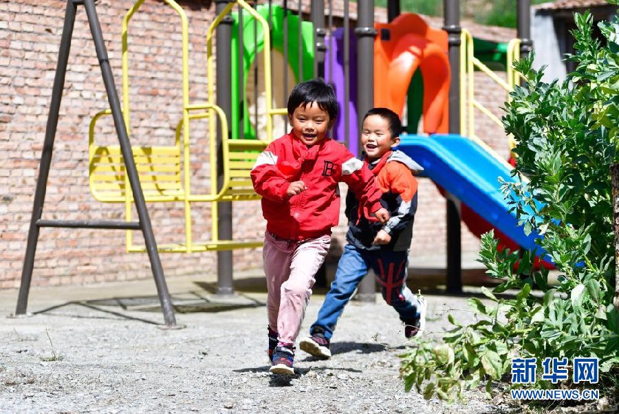 8月31日,在來塘村學(xué)校,孩子們?cè)谡n間玩耍。新華社記者 張龍 攝
