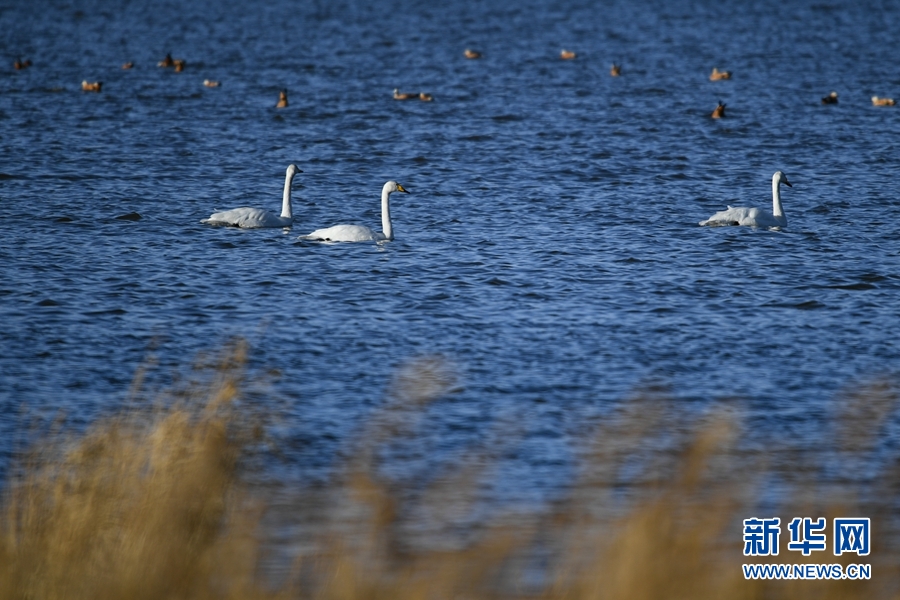 大天鵝飛抵柴達木盆地都蘭湖國家濕地公園“越冬”