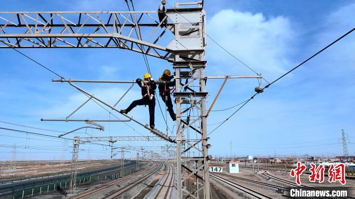 就這樣,兩個女孩子不斷重復訓練,心態(tài)越來越穩(wěn),爬桿的動作也越來越熟練。如今,“女蜘蛛俠”們已經能熟練地檢修接觸網的各個部位,清理線路上的鹽分和風沙。