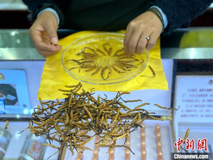 圖為西寧市某商鋪銷售人員正在整理冬蟲(chóng)夏草。 中新社記者 孫睿 攝