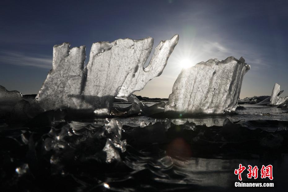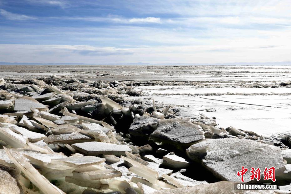 青海湖“冰封期”:巨大冰凌層層堆砌