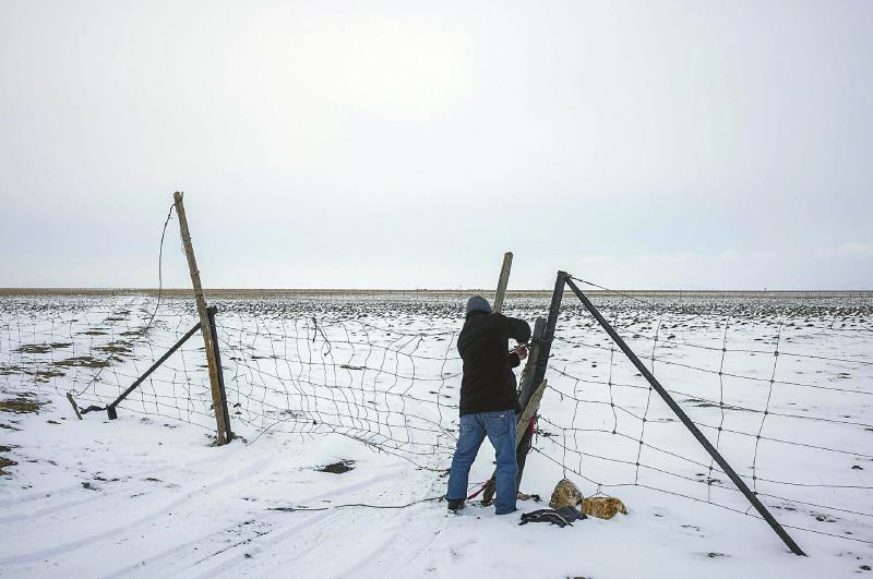3月6日,若爾蓋濕地國家級自然保護區(qū)管理局生態(tài)護濕員如科冒雪清理棲息地周邊的隱患。尹鋼 攝