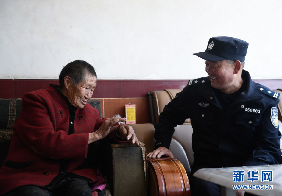 4月16日,在寺溝景區(qū)警務室轄區(qū)內的珠固鄉(xiāng)寺溝村東海社,趙延壽在老百姓家里了解情況。新華社記者 張龍 攝