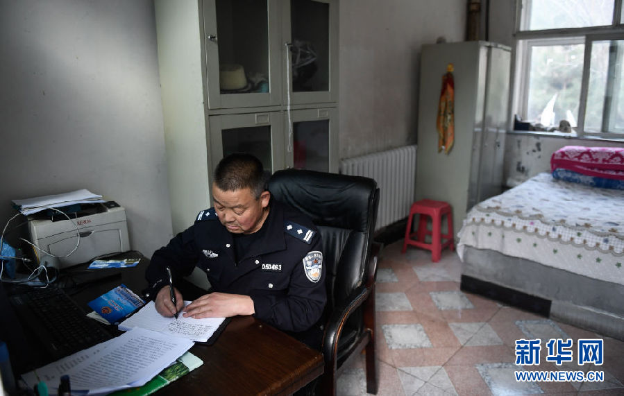 4月16日,在寺溝景區(qū)警務室,趙延壽準備進村提供警務服務。新華社記者 張龍 攝