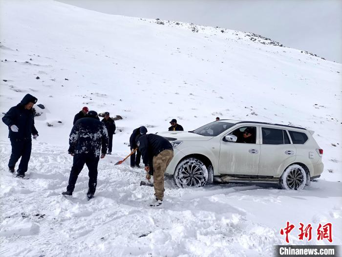 日前,青海省南部的三江源區(qū)域多地降雪,當(dāng)?shù)厣鷳B(tài)管護(hù)人員開啟艱難的風(fēng)雪巡山路。據(jù)悉,青海省玉樹藏族自治州曲麻萊縣約改鎮(zhèn)崗當(dāng)村的生態(tài)管護(hù)人員,野外巡山途中,大雪封山車輛被困。生態(tài)管護(hù)人員清雪無(wú)果,便徒步抄小道抵達(dá)巡護(hù)目的地。返程時(shí),當(dāng)?shù)啬撩裼媚ν熊噷⑸鷳B(tài)管護(hù)人員送至車輛旁邊。