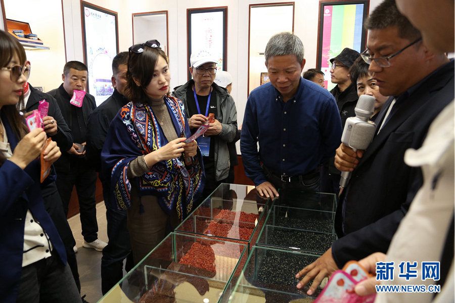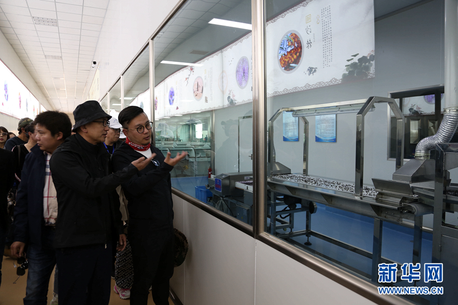 浙商們參觀黑枸杞的篩選過程。新華網(wǎng) 卡婭梅朵 攝
