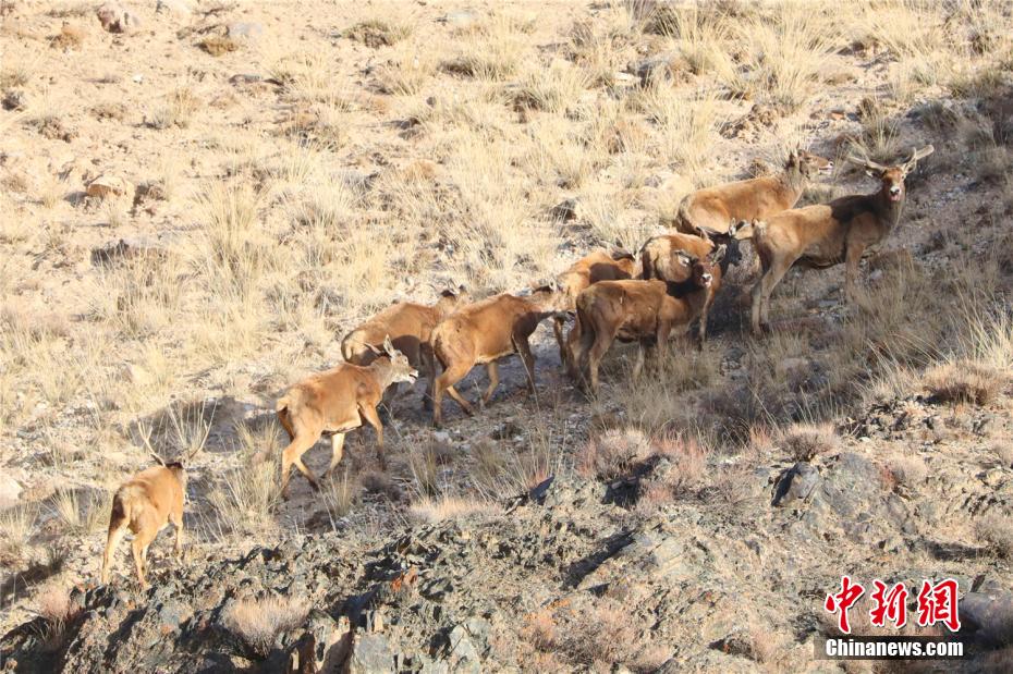 近日,甘肅張掖市祁連山國家公園內(nèi)野生動物“組團”出沒的難得一見畫面。郎文瑞 攝