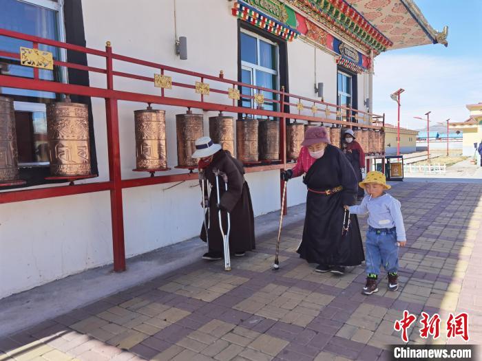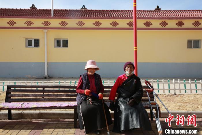 上午十點,長江源頭的青海玉樹治多縣幸福敬老院內(nèi),陽光靜靜普照小廣場,金色轉(zhuǎn)經(jīng)筒邊身著藏袍的老人彎腰拄拐,牽著吃糖的孩子悠悠踱步,遠(yuǎn)處皚皚雪山起伏。