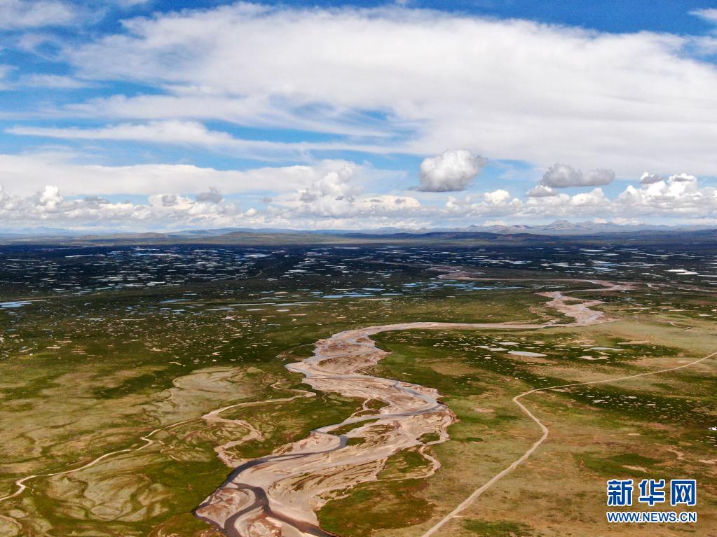 這是7月23日拍攝的長(zhǎng)江源地區(qū)的查旦濕地(無(wú)人機(jī)照片)。新華社記者 張龍 攝