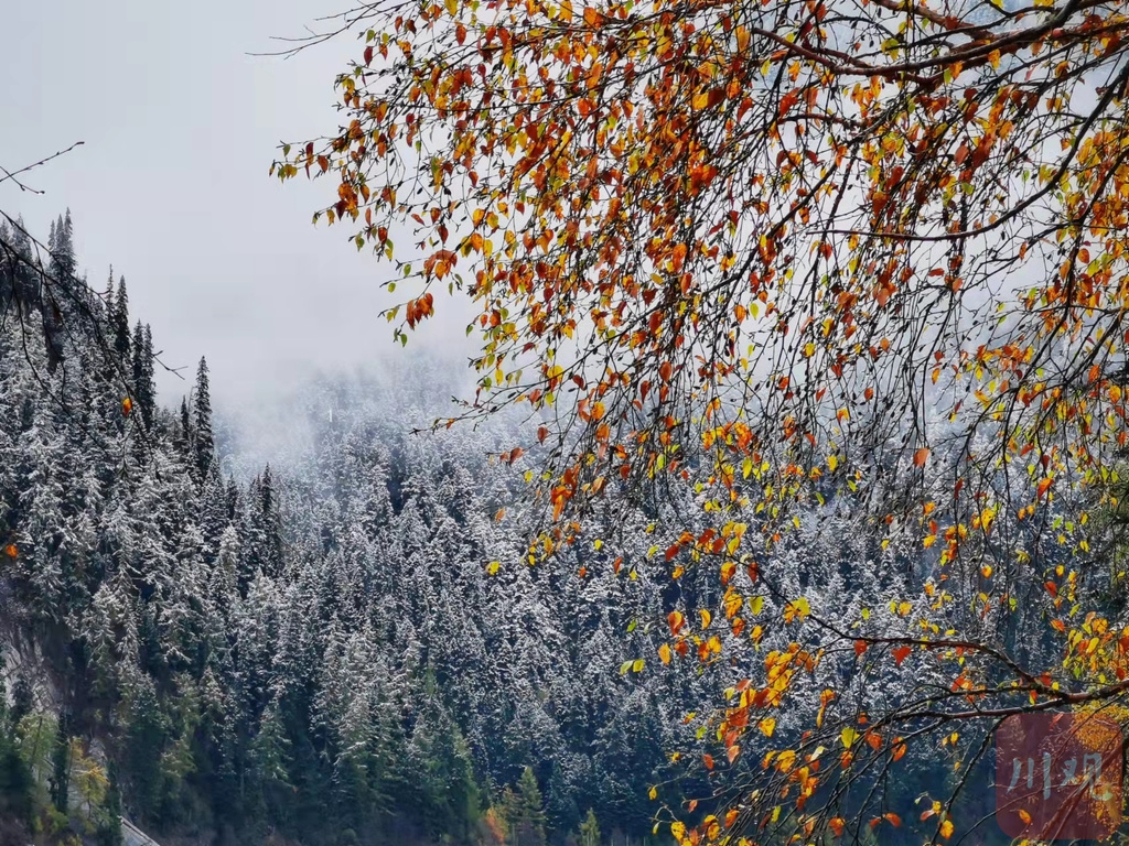 交替時(shí)節(jié),四川各地眼下已融合成了多姿多彩的天然調(diào)色盤,或是彩林錯(cuò)落,或是銀裝素裹,彩林與白雪相遇相擁,半山彩林半山雪的景致讓人無(wú)限向往。