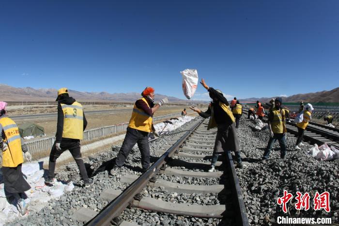 藍天白云,風和日麗,念青唐古拉山腳下,一群“天路保健醫(yī)生”身穿工裝、手持器械、翹首以待準備為道床“洗澡修腳”。