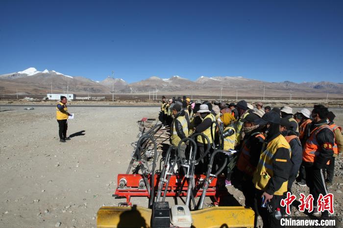 圖為當雄車間主任郝二小在班前會上技術(shù)交底。中鐵十二局集團鐵路養(yǎng)護公司當雄車間供圖