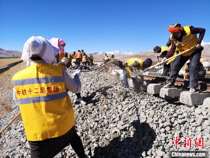 圖為工人對達瓊果站2號道岔精細搗固。中鐵十二局集團鐵路養(yǎng)護公司當雄車間供圖