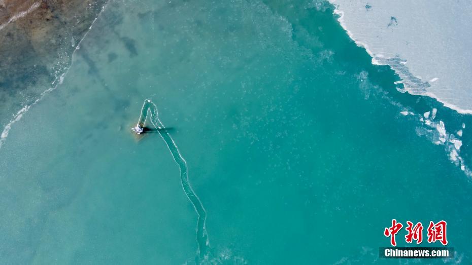 12月21日,航拍冬日青海湖。冬日青海湖周圍的積雪將湛藍(lán)的湖面包裹起來,不斷上凍的湖面猶如一面鏡子。(無人機(jī)照片) 中新社記者 李江寧 攝