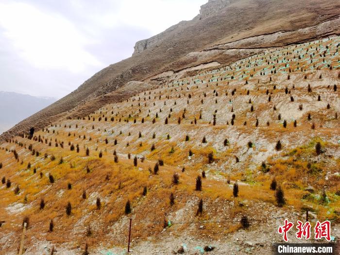 “這個礦山勢險峻,交通極其不便,強行擴路運送機械上山,肯定會造成生態(tài)環(huán)境的二次破壞,只能依靠肩挑手扛把羊板糞、草籽等運到山頂?!逼钸B縣林草局原局長馬有明介紹,西山梁礦區(qū)海拔3460米,原始生態(tài)非常脆弱,氣候非常惡劣,每年零度以下的天氣就有183天,復綠難度非常大。