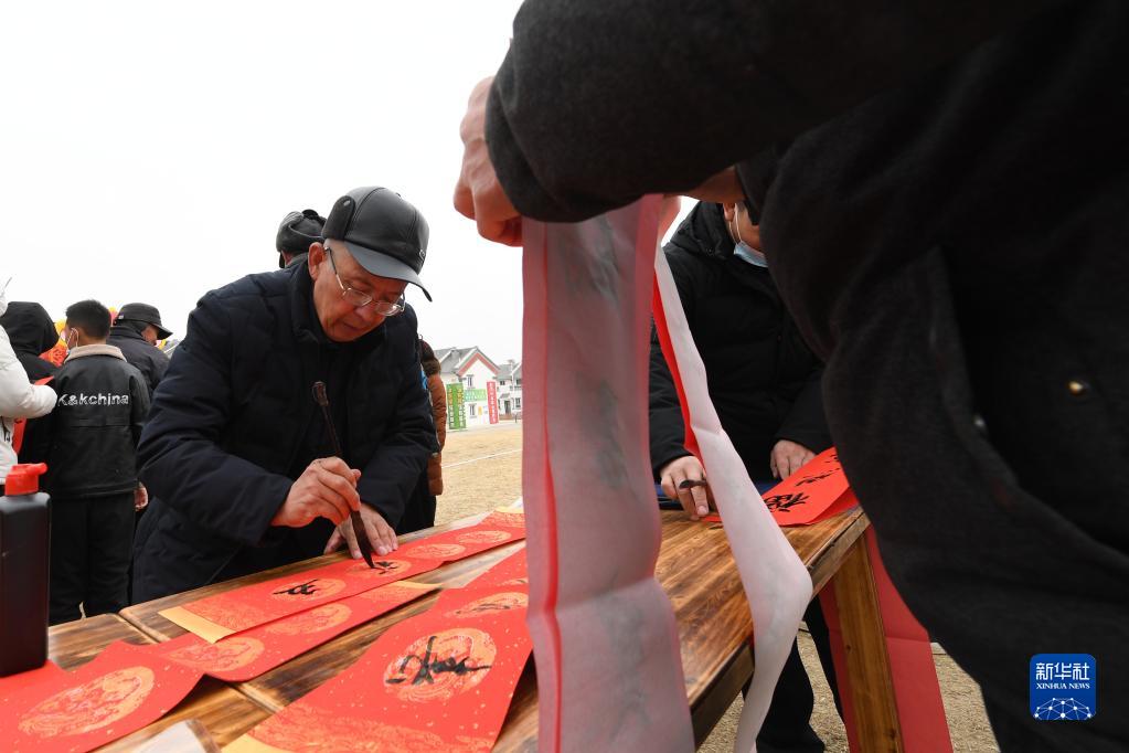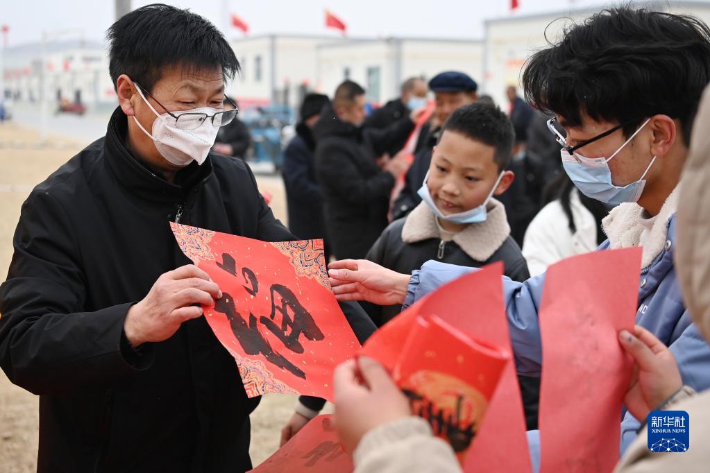 1月25日,在蘭州新區(qū)舟曲避險搬遷安置點,舟曲地質災害避險搬遷第一臨時黨支部組織書法家給搬遷群眾送春聯(lián)。新華社記者 范培珅 攝