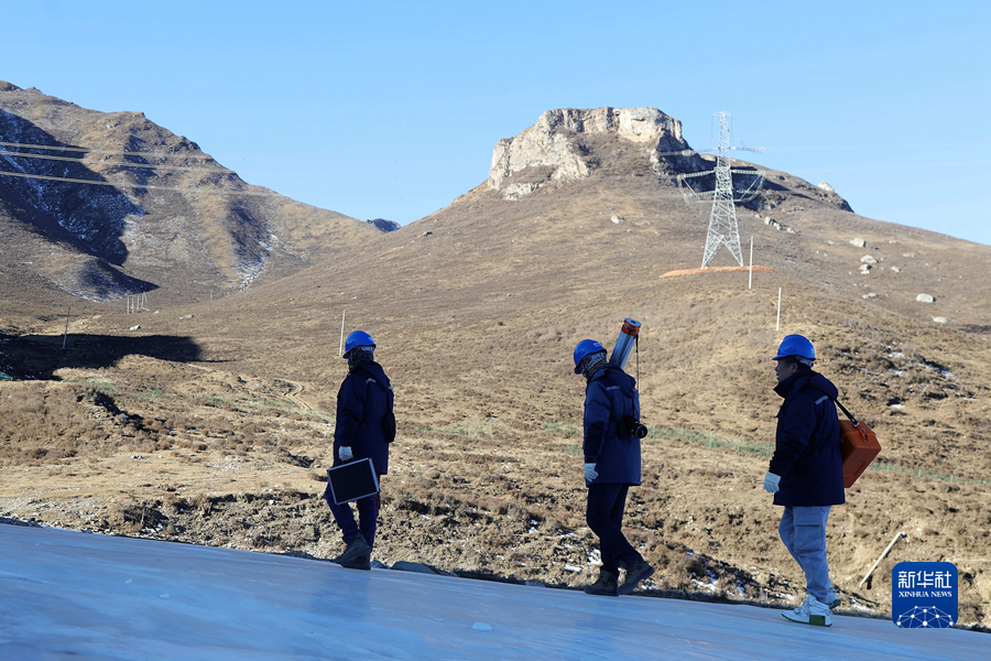 1月19日,國(guó)家電網(wǎng)青海省電力公司檢修公司輸電檢修中心專業(yè)班組成員在巡線途中。新華社記者 趙玉和 攝